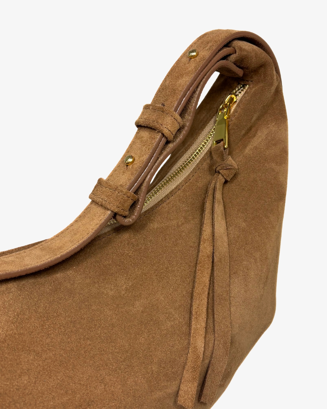 Torebka RIVA o formie hobo w rozmiarze medium, wykonana z naturalnego zamszu .